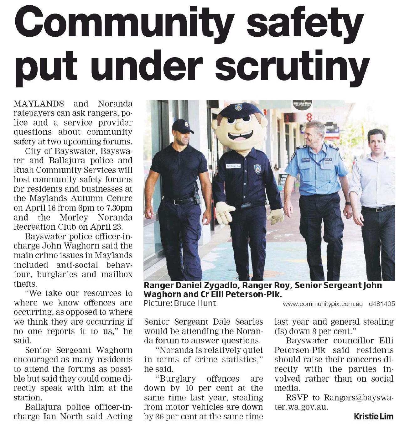Please report any issues to WA Police and our city’s Security Service (1300 360 333). For more information: https://www.bayswater.wa.gov.au/community/rangers-and-security/safety-and-security