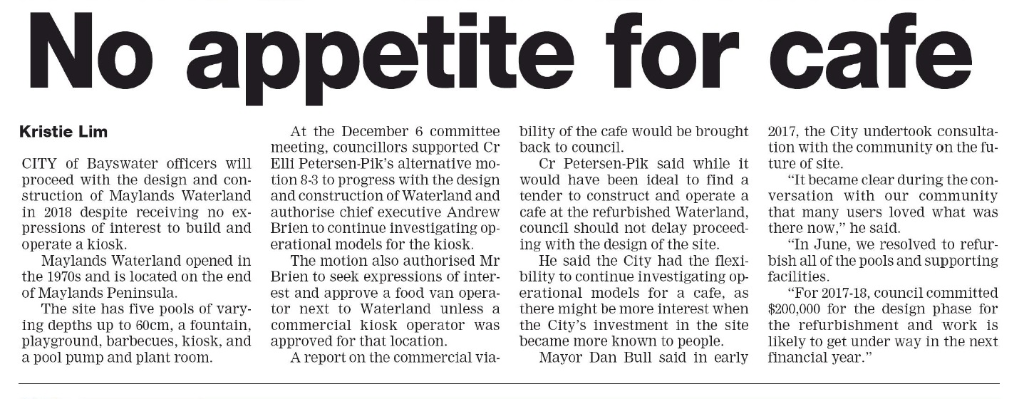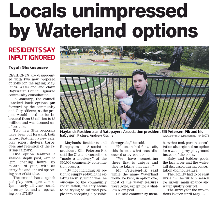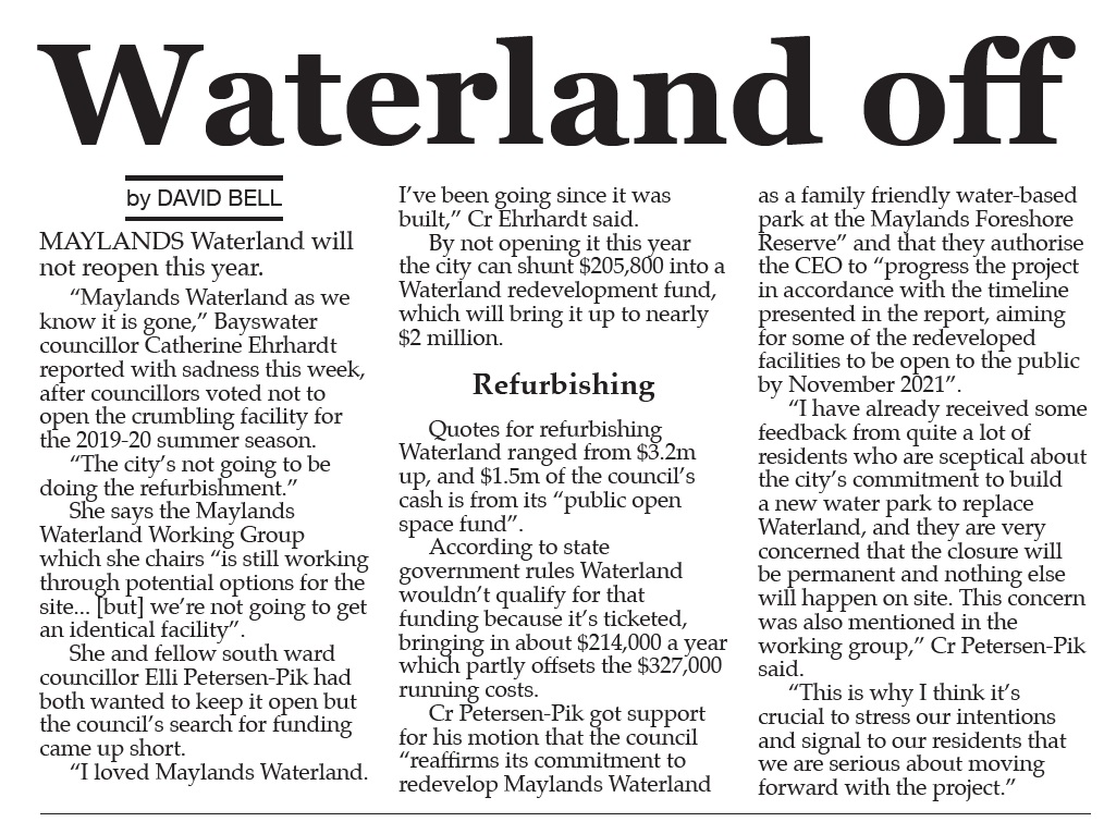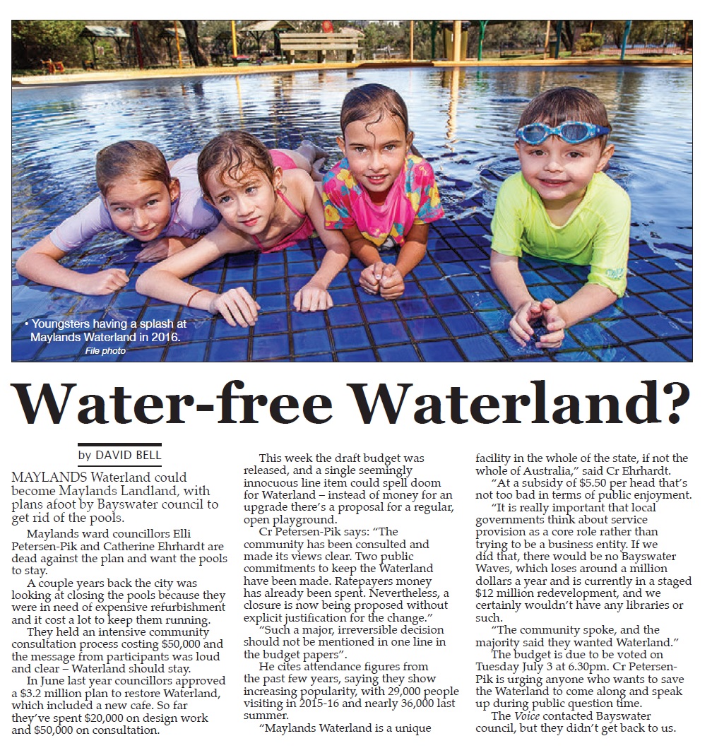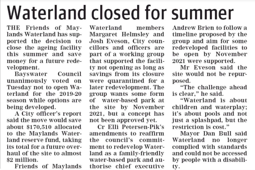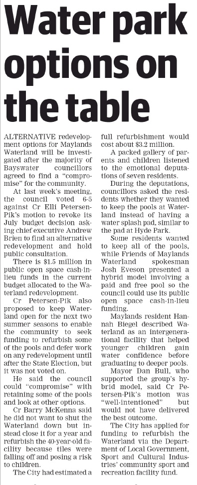 During 2016/17, before I got elected to Council, I led a successful high profile community campaign to get our Council to commit to keeping Maylands Waterland in Maylands and refurbish the existing pools.