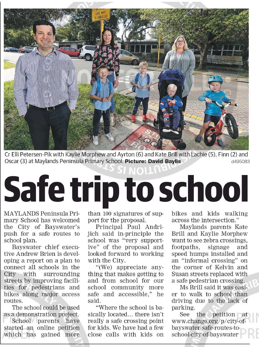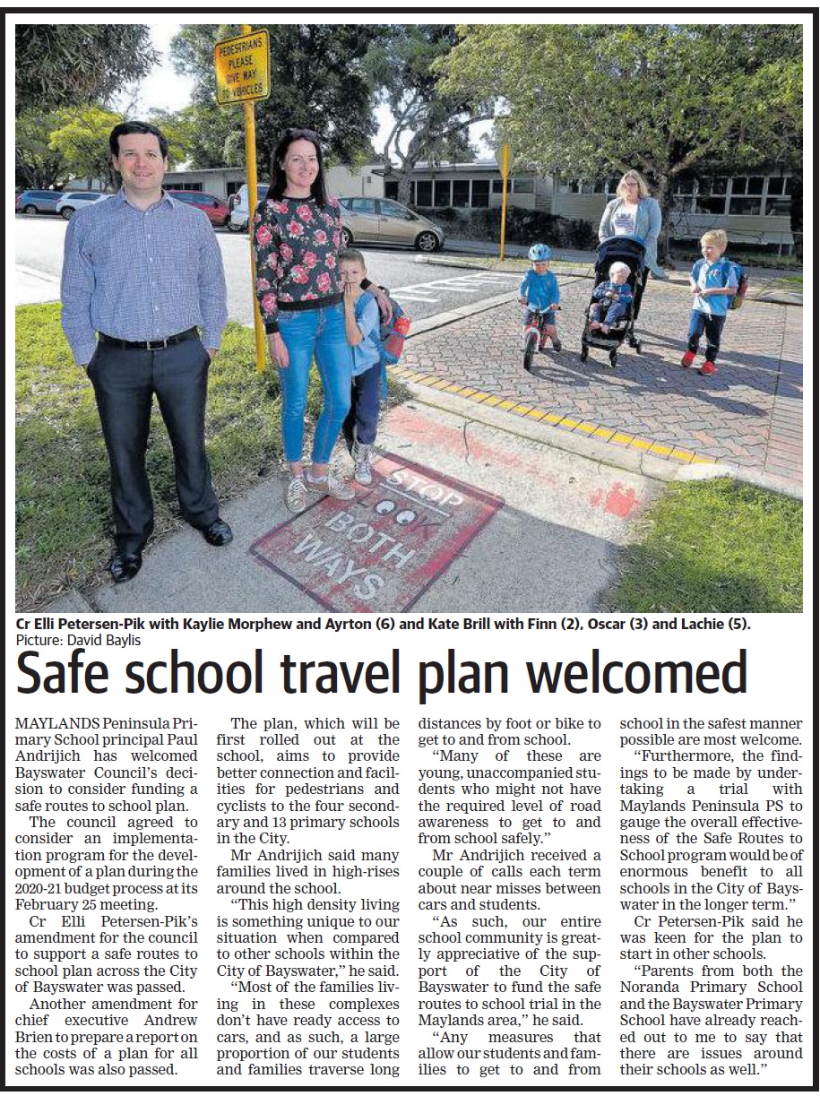 I initiated a ‘Safe Routes to School’ plan aiming to improve the safety, amenity and connectivity of the main paths and crossings children use, where the Maylands Peninsula Primary School was the first school to be looked at.